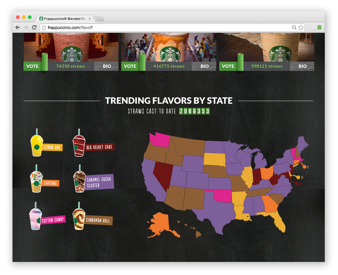 A fun, mobile-forward microsite designed to discover the summer's most loved flavor, winning it a permanent spot on the summer menu.